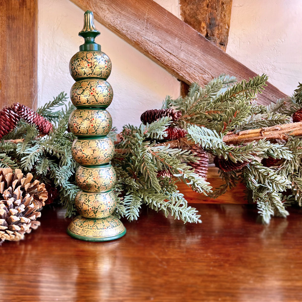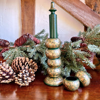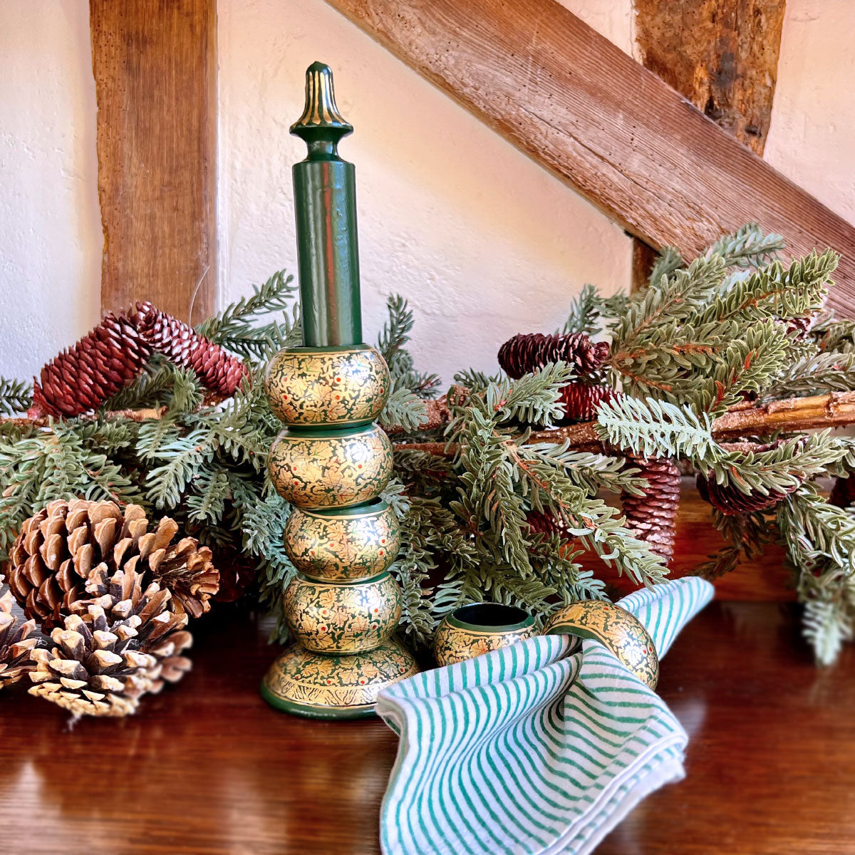Our limited edition Christmas collection from Kashmir includes festive papier-mâché hand painted candle sticks, trinket boxes, baubles and napkin rings depicting exotic flora from the Kashmir Valley in jewel colours and flecks of gold.
