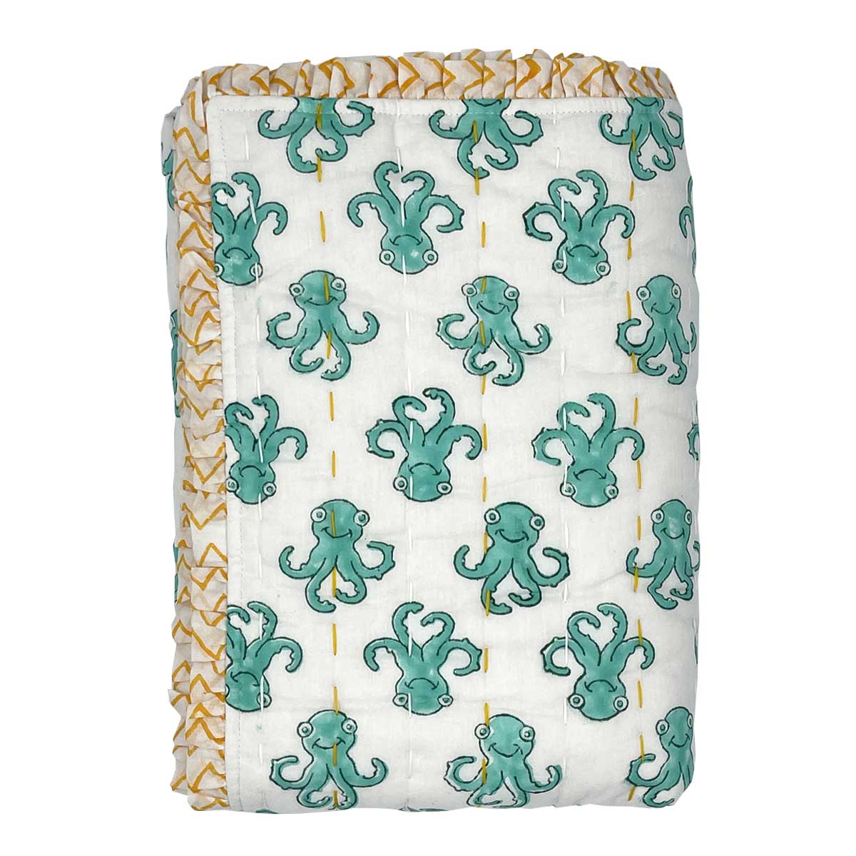 OCTO Turquoise Blockprint Reversible Junior Quilt