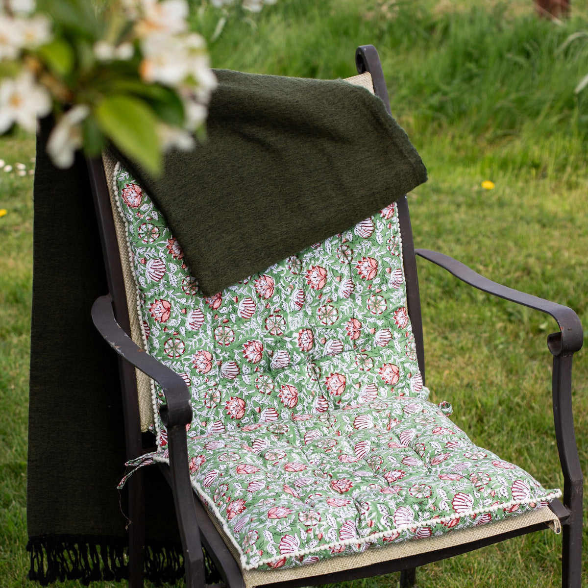 Designed with comfort and style in mind, these are one of our favourite pieces for alfresco entertaining. The SAIRA seat pads compliment the natural beauty of gardens and add an elegant touch to your seating. Fasten them with ties to garden chairs. Finished with a contrast piping.
