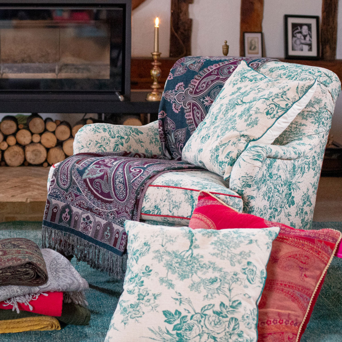 Rich, warm hues embellished with an intricate pattern, the Jamevar throw imparts a distinct character to your living space. Use them to brighten a faded armchair, add colour and texture to a bed or as a vibrant shawl on a cold day. Woven with a double weft technique thus creating a different colourway on the reverse and finished with a tassled edging.