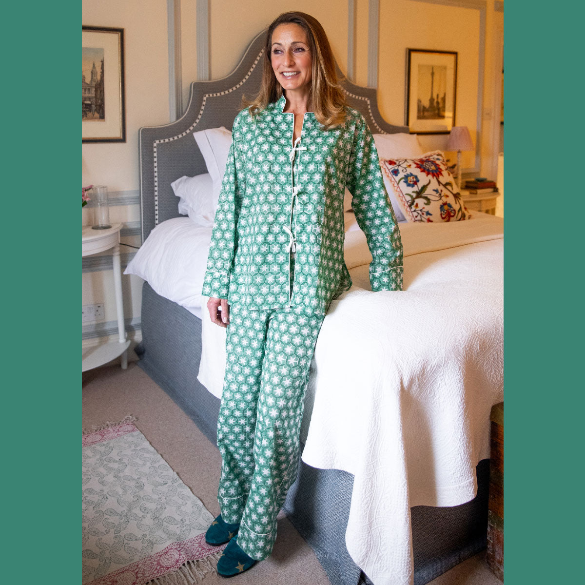 Drift off in style and comfort or simply waltz around in our new 100% cotton festive SITARA Block print PJs!